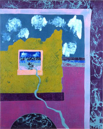 "Day", Divided Block Print with stencils, Printed on BFK Reeves paper. Dimensions including border: 20.5" w x 25" h