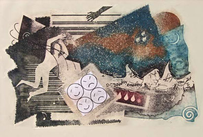 ![]() “Heart Rhythms” Photo Etching on Circuit Board Inked A la poupe’e, Chine colle’, Printed on Stonehenge Pearl Gray paper. Dimensions including border: 22.5" w x 18" h |