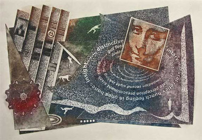 ![]() "Knowledge Unveiled" Photo Etching on Circuit Board Inked A la poupe’e, Chine colle’, Printed on Stonehenge Pearl Gray paper. Dimensions including border: 22.5" w x 18" h |